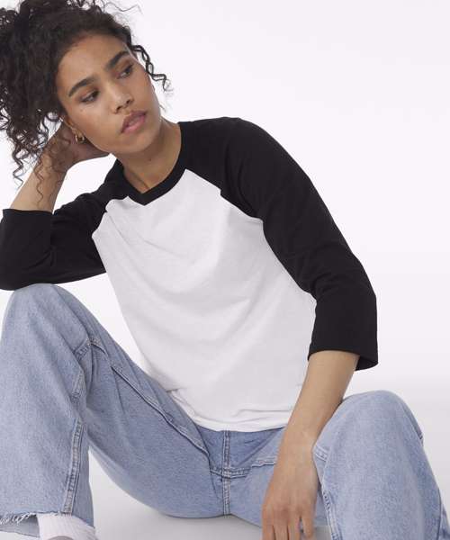 The classic baseball tee with raglan 3/4 sleeves takes on a fresh update with a super soft blends of combed and ringspun cotton, modern fit, 3/4 contrast raglan sleeves and crew neck with contrast trim. This 3/4 sleeve blank baseball tee has a tight-knit surface and is great for printing on. This tee comes in a variety of cool colour combinations.
